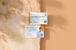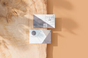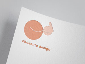 「chokonto design」の頭文字である C と d をモチーフにしたロゴです。 丸みのあるフォルムで構成することで、クライアントにそっと寄り添う姿を表現しました。向かい合う形は、人と人がつながる 様子や、デザインを通して笑顔が生まれ、広がっていく関係性を象徴しています。デザインに悩む方のそばに立ち、想いや アイデアを一緒に整理しながら形にしていく、やさしく寄り添うデザイナーの姿をイメージしています。 カラーには、温かさや柔らかさを感じさせる色合いを採用し、親しみやすく安心感のあるブランドイメージを表現しました。
